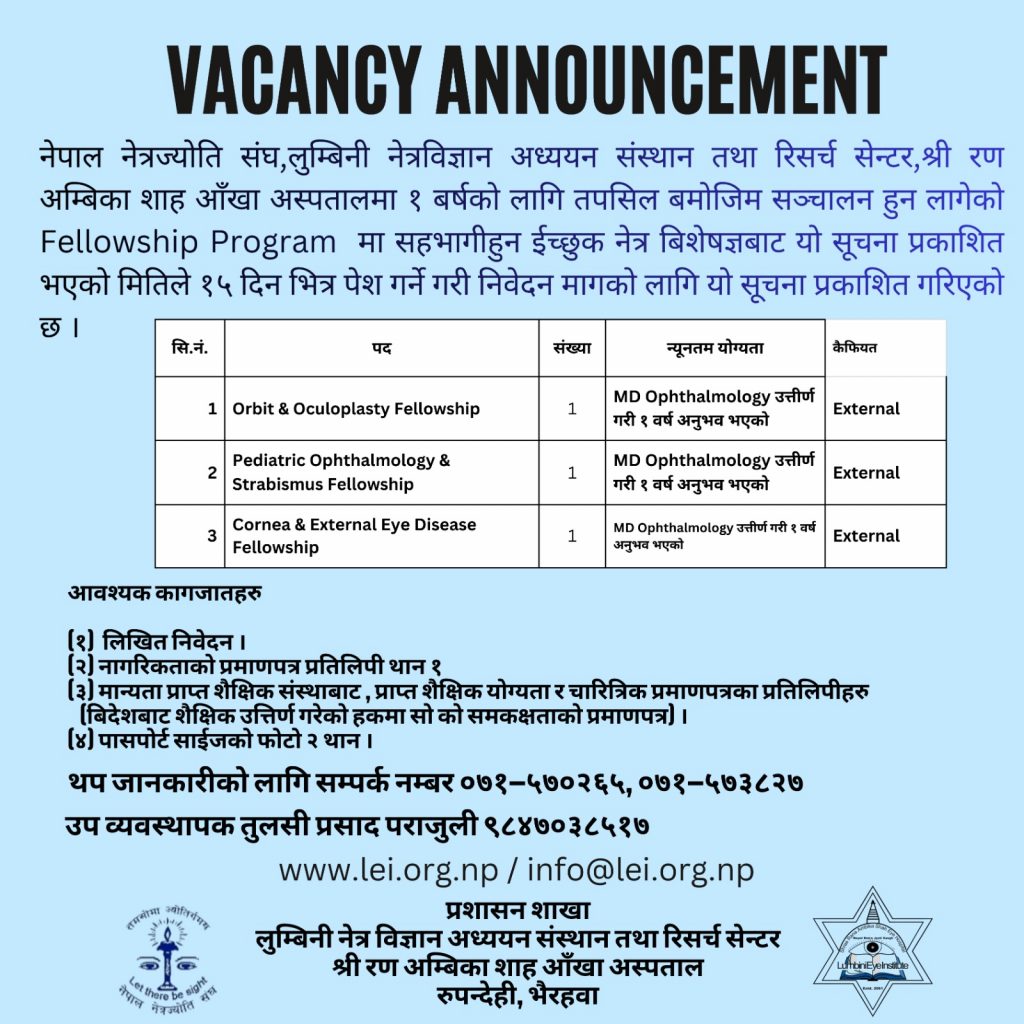 Established in 1983, starting with only two rooms and four staffs, including Dr. S.P. Dhital as only a doctor within Government Hospital (Bhim Hospital) premises, today Lumbini Eye Institute (LEI) has evolved from a small eye clinic to one of the leading and most successful eye care center among several eye hospitals run under Nepal…